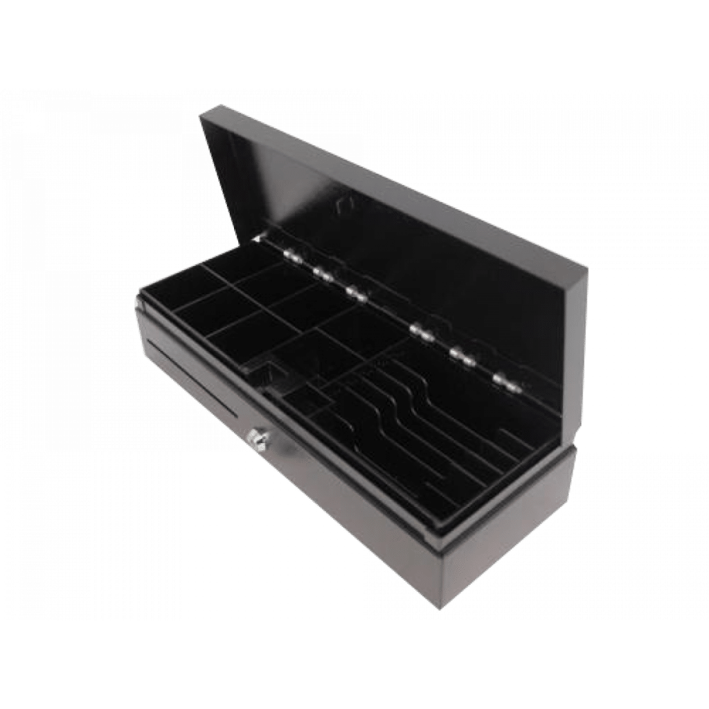 Матеріал метал Замок 3-х позиційний Відділення для банкнот 5+1 регулюється Відділення для монет 8 Габарити, мм Д×Ш×В 460х170х100 мм Напруга 6В/12В/24В Роз’єм RJ11 (роз’єм на 6 контактів). Кольори сірий / чорний. Виробництво Литва Знімна касета для інкасації доступна Проріз на фронтальній частині для